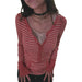 Y2K Grunge Emo 00s Vintage T Shirt Black Grey Striped V Neck Long Sleeve Jumper Tops Chic Women Autumn Retro Mall Goth Tees