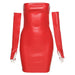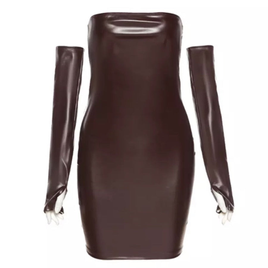 Y2K Leather With Gloves Party Dress Women's Backless Sexy Low Cut Clubwear Skinny Black Bodycon Mini Dresses Female