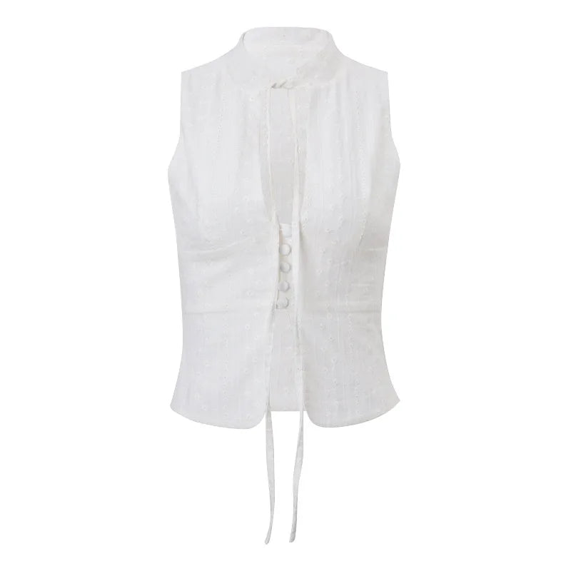 y2k Tank Top Women Summer Clothes White Flower Embroidery Mock Neck Front Cutout Sleeveless T Shirt Vest Streetwear